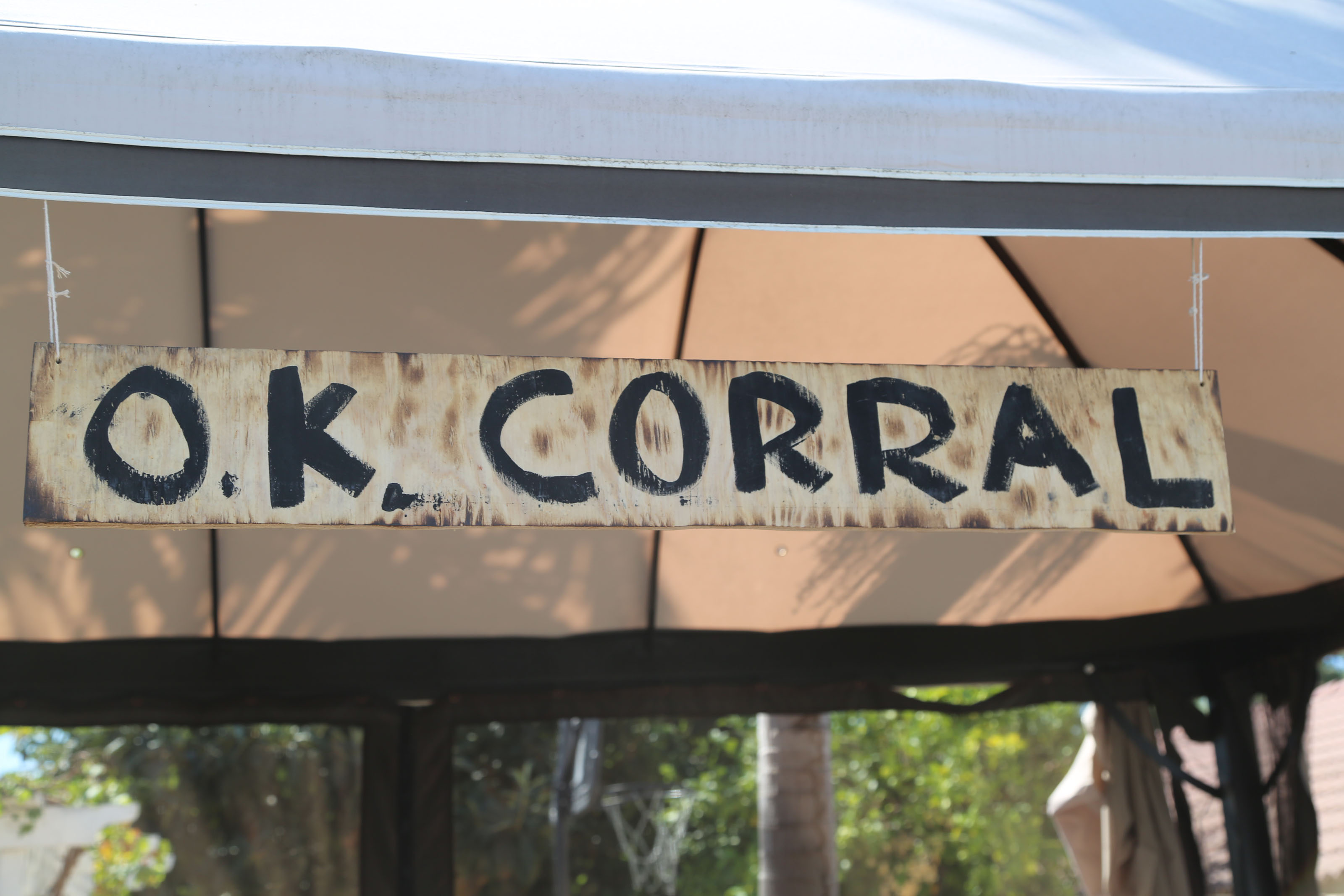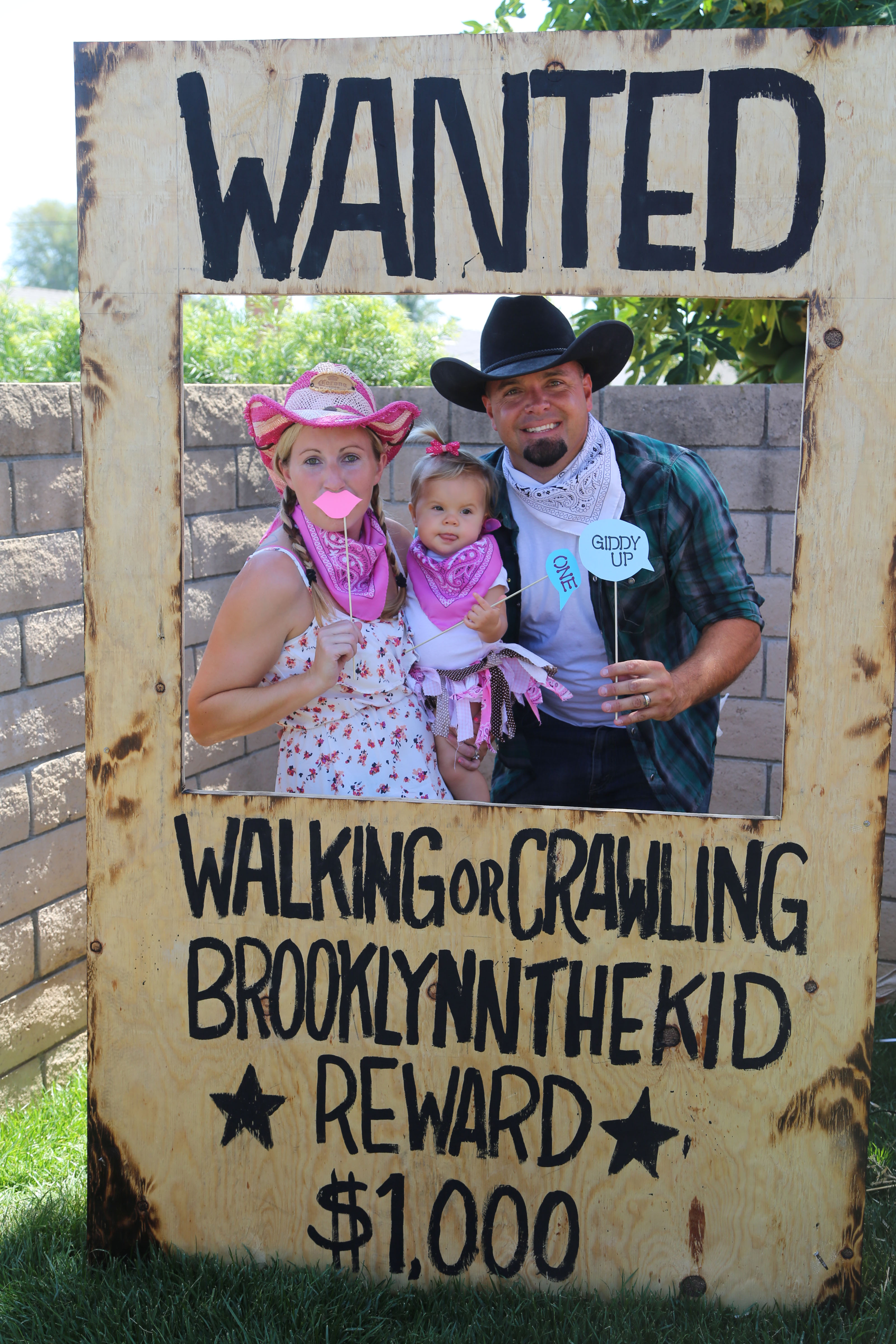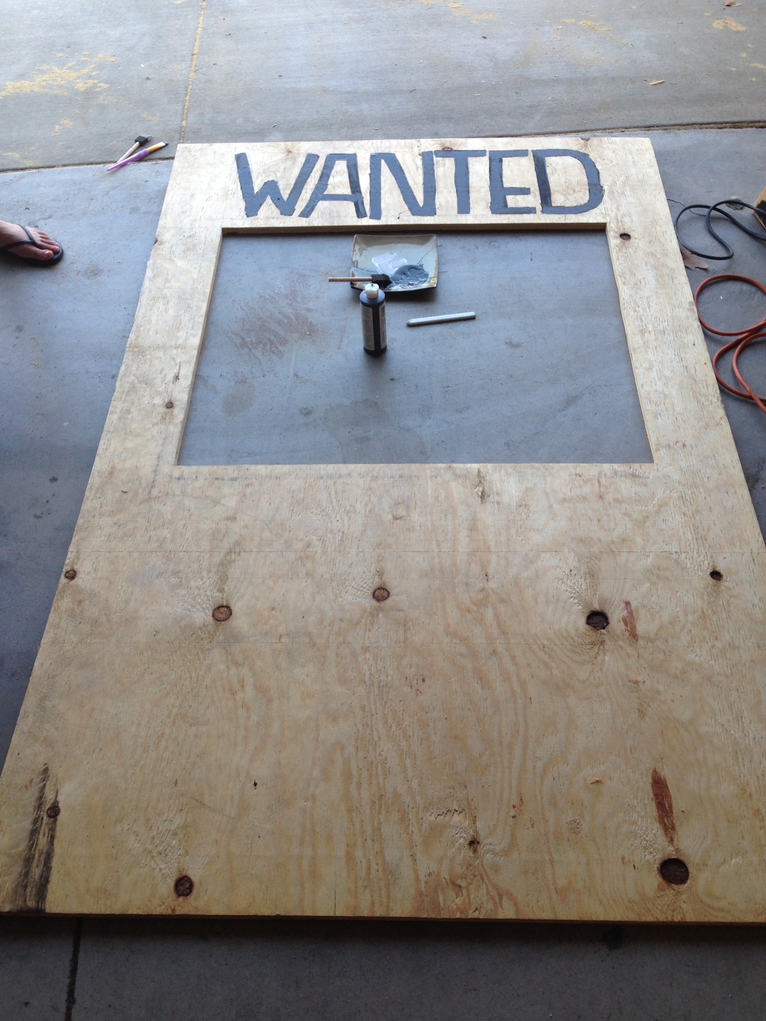 Now for some of the big decorations I got my wonderful husband to help me with! He was able to bring me home some plywood and we borrowed my some of my dads tools to make a big WANTED photo booth sign, a big 1, and a few signs to post up around my parents yard. My husband and I really had a lot of fun making these and then Tess helped me paint the ones that needed to be painted.