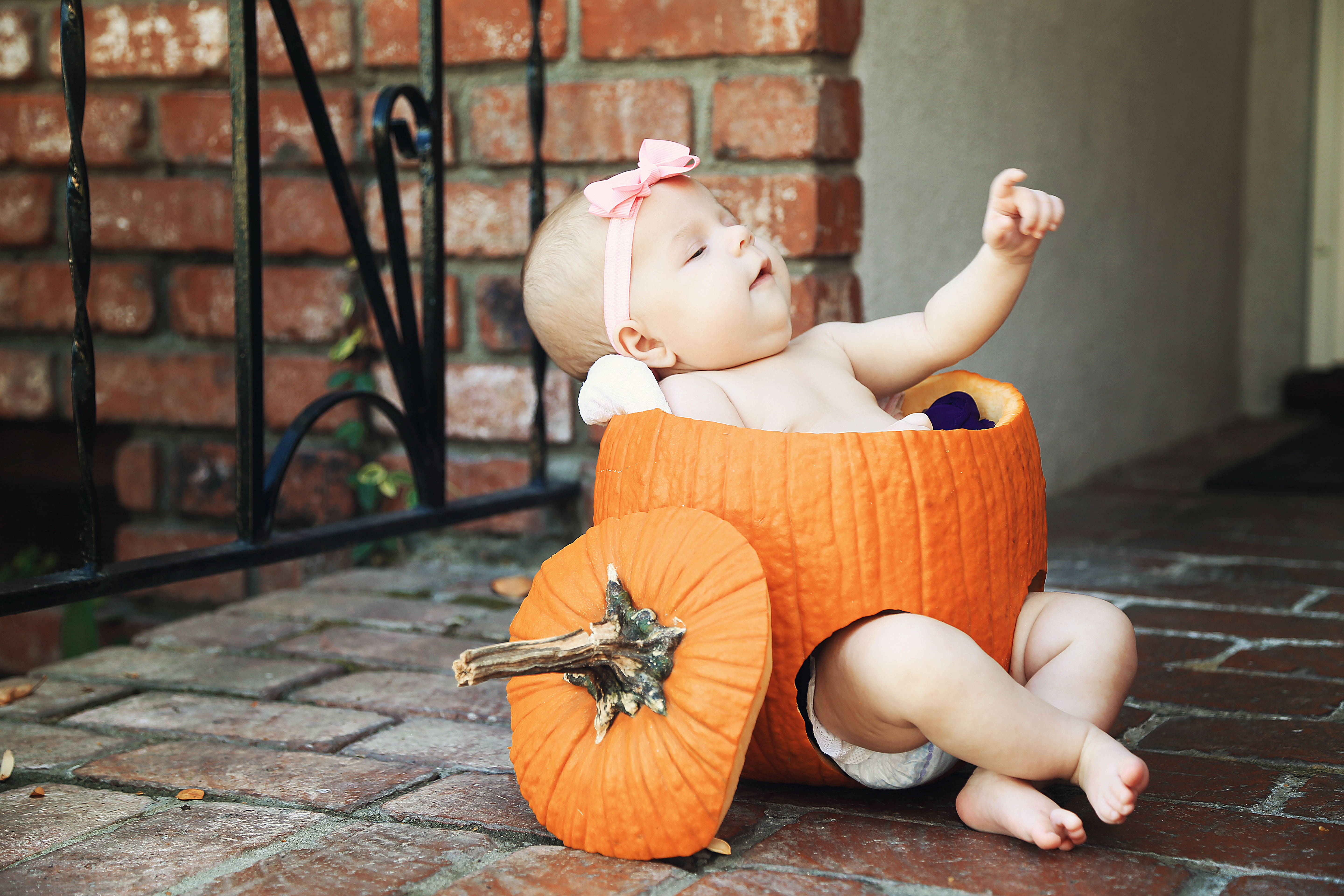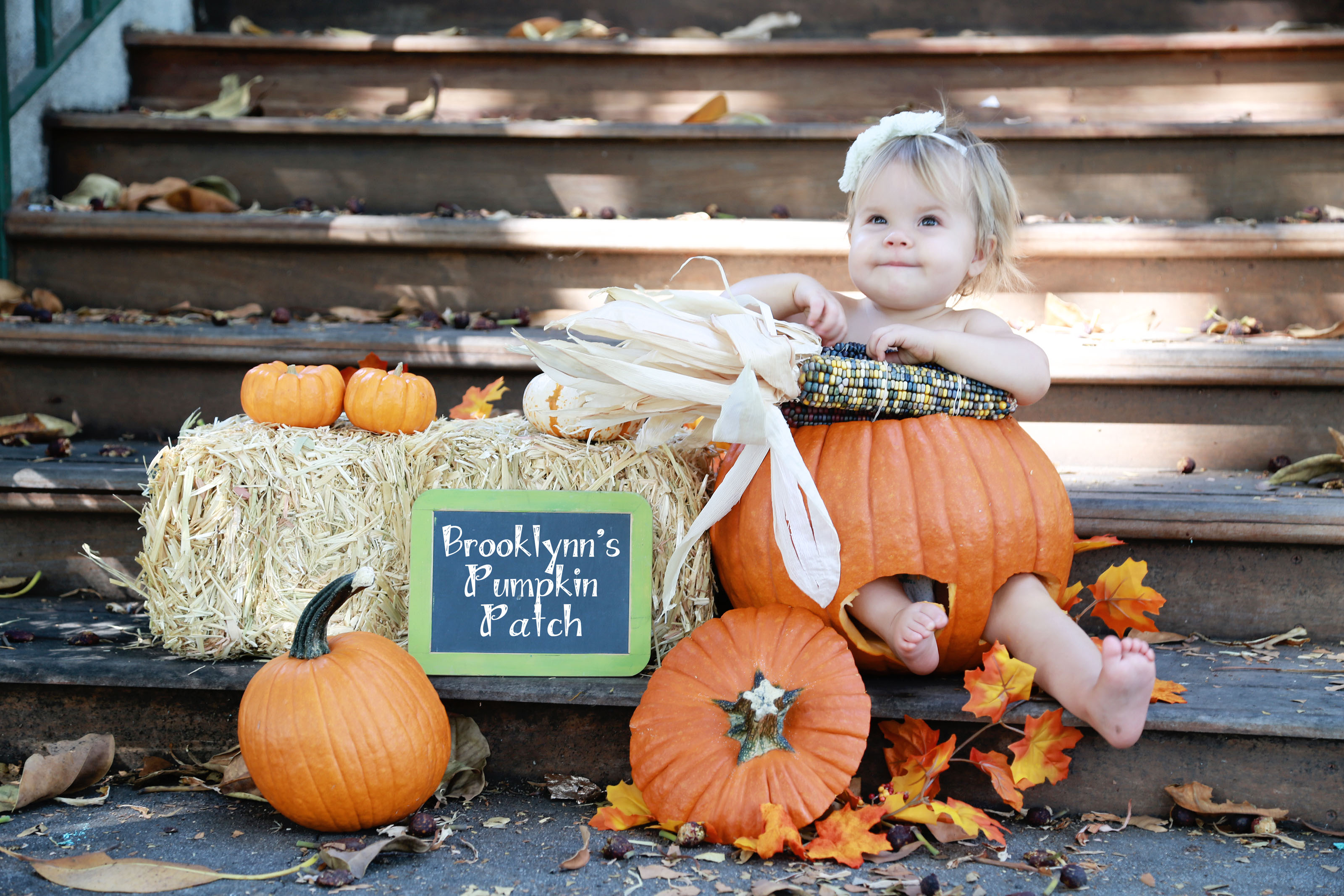 Now fast forward to about 2 weeks ago. Brooklynn and I went to go meet Kimberly for our pumpkin photo shoot and both of us were so amazed at how much Brooklynn has grown! Now here are a few photos from that shoot. I am absolutely in love with them so much!